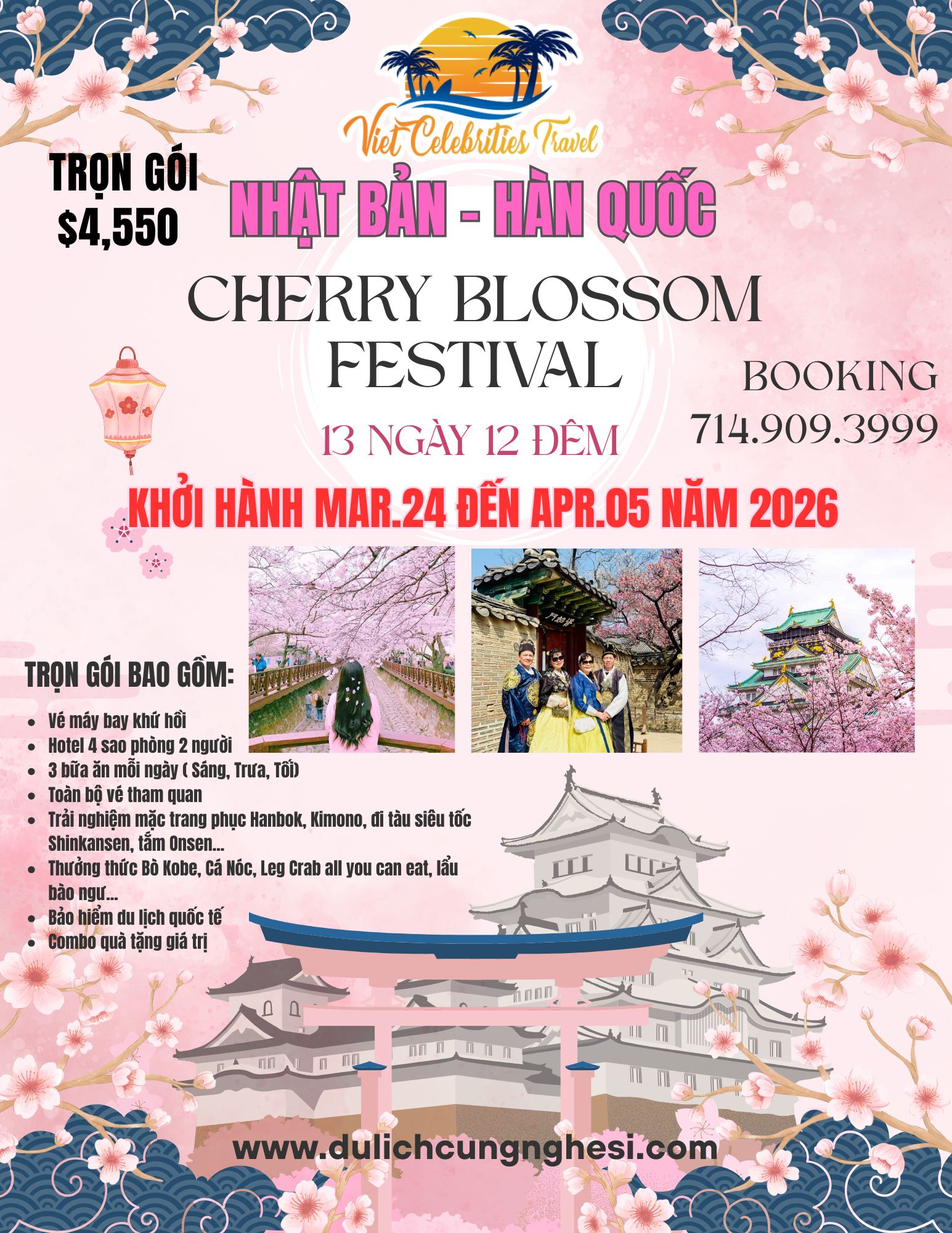 Tour Hàn Quốc - Nhật Bản mùa xuân 13 ngày 12 đêm tháng 3/2026