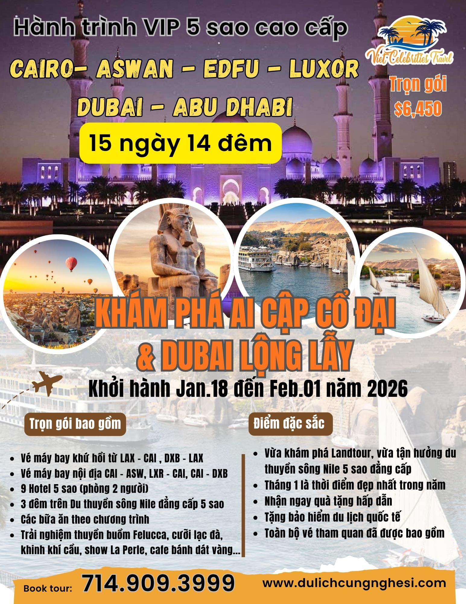 Giá trọn gói: $5,950 ( Dành cho khách khởi hành từ LAX)